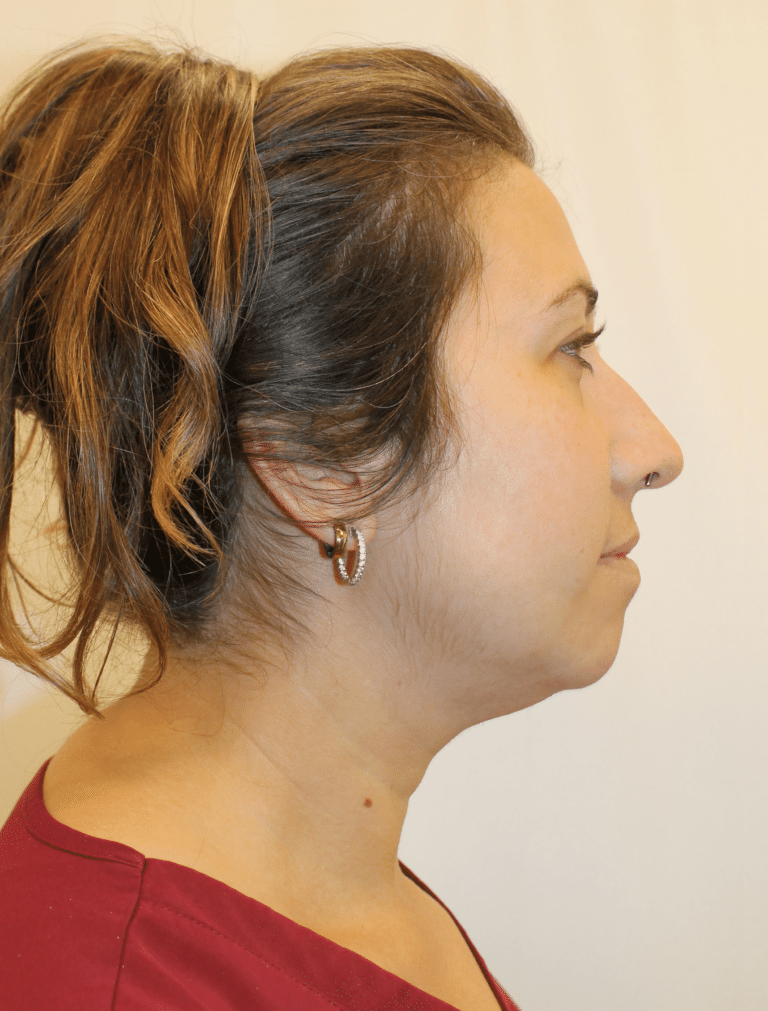 This patient achieved her results with buccal fat pad removal and submental liposuction.