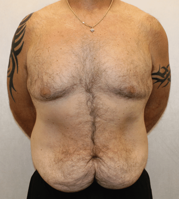 This patient achieved his results with an extended abdominoplasty (tummy tuck) following massive weight loss of 100+ pounds.